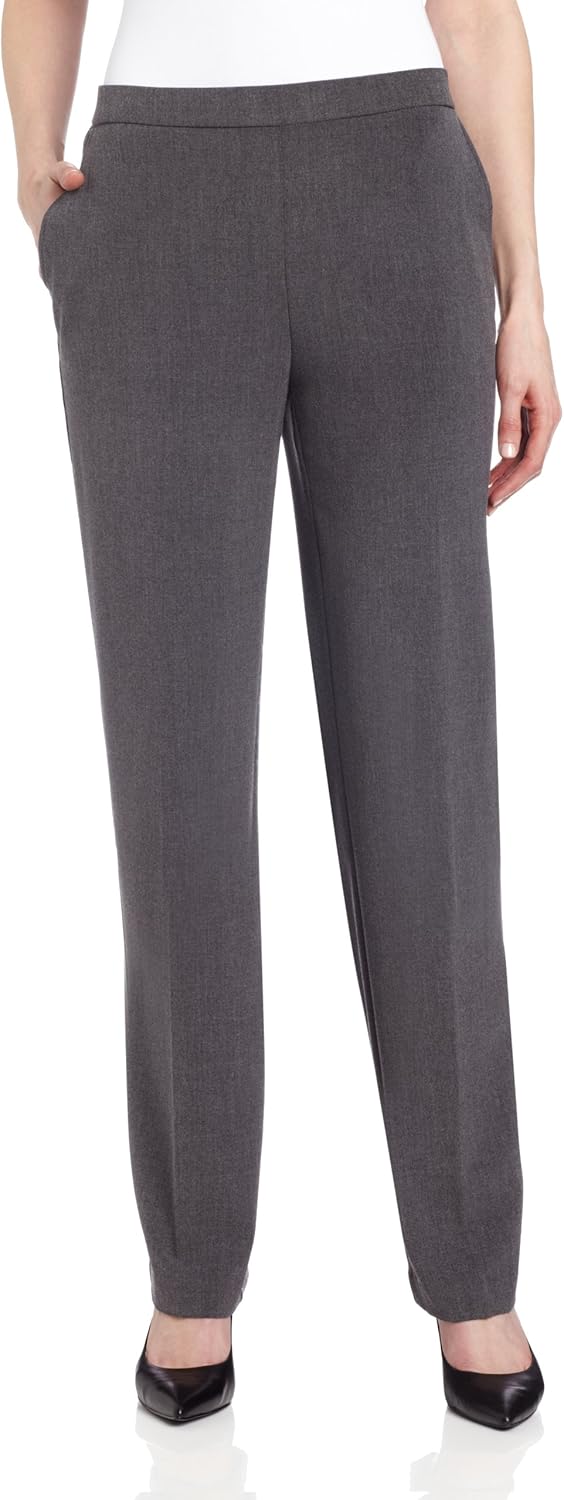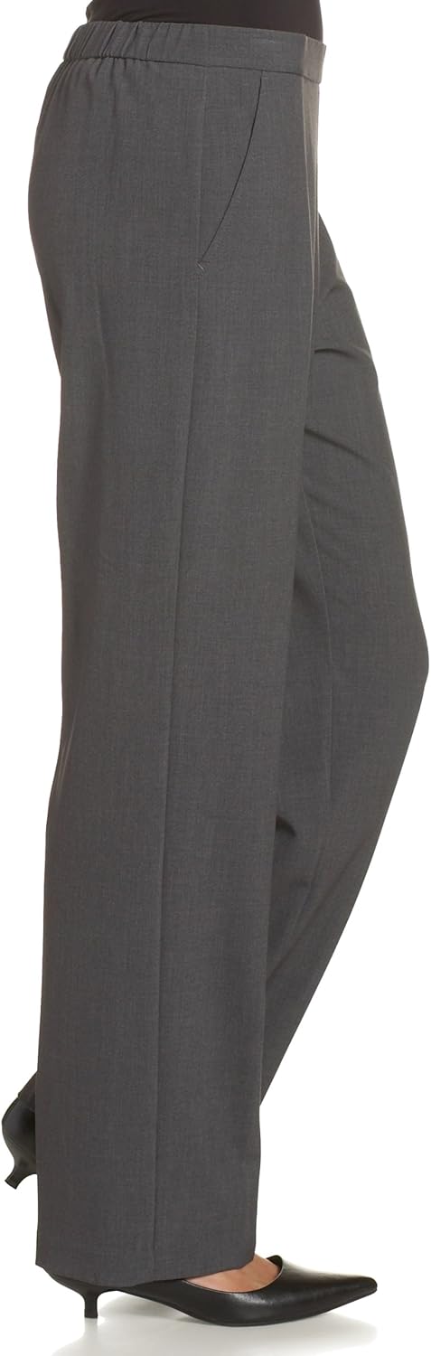 $22 Straight-leg pant featuring hidden-elastic comfort waistband Bistretch Woven Fabric Pull on pant with slant front pockets Inseam lengths: Regular 31 , Short 29 , Tall 33 Leg Opening: 17 3/4 Also available in petite/petite short and plus/plus short sizes