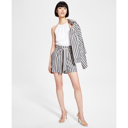 $69 An updated office essential from Bar III, pair them with a tucked-in top for a chic finish. Approx. inseam: 5 High rise Pull-on style; self tie belt at waist On-seam pockets at hips; non-functional pockets at back